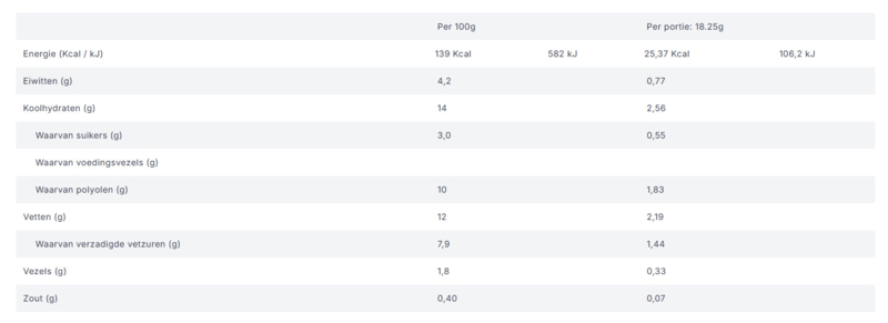 Zoetstof (erytritol); opklopmiddel (glucose, kokosolie, emulgator (melkzuuresters van mono- en diglyceriden van vetzuren), melkeiwit, stabilisator (natriumalginaat)); vezel (polydextrose); gelatine; appelzuur; aroma’s; zoetstof (steviolglycosiden uit stevia).