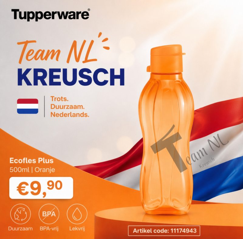 Tupperware - Eco fles “Koningsdag” aanbieding - 500 ml oranje met sportdop